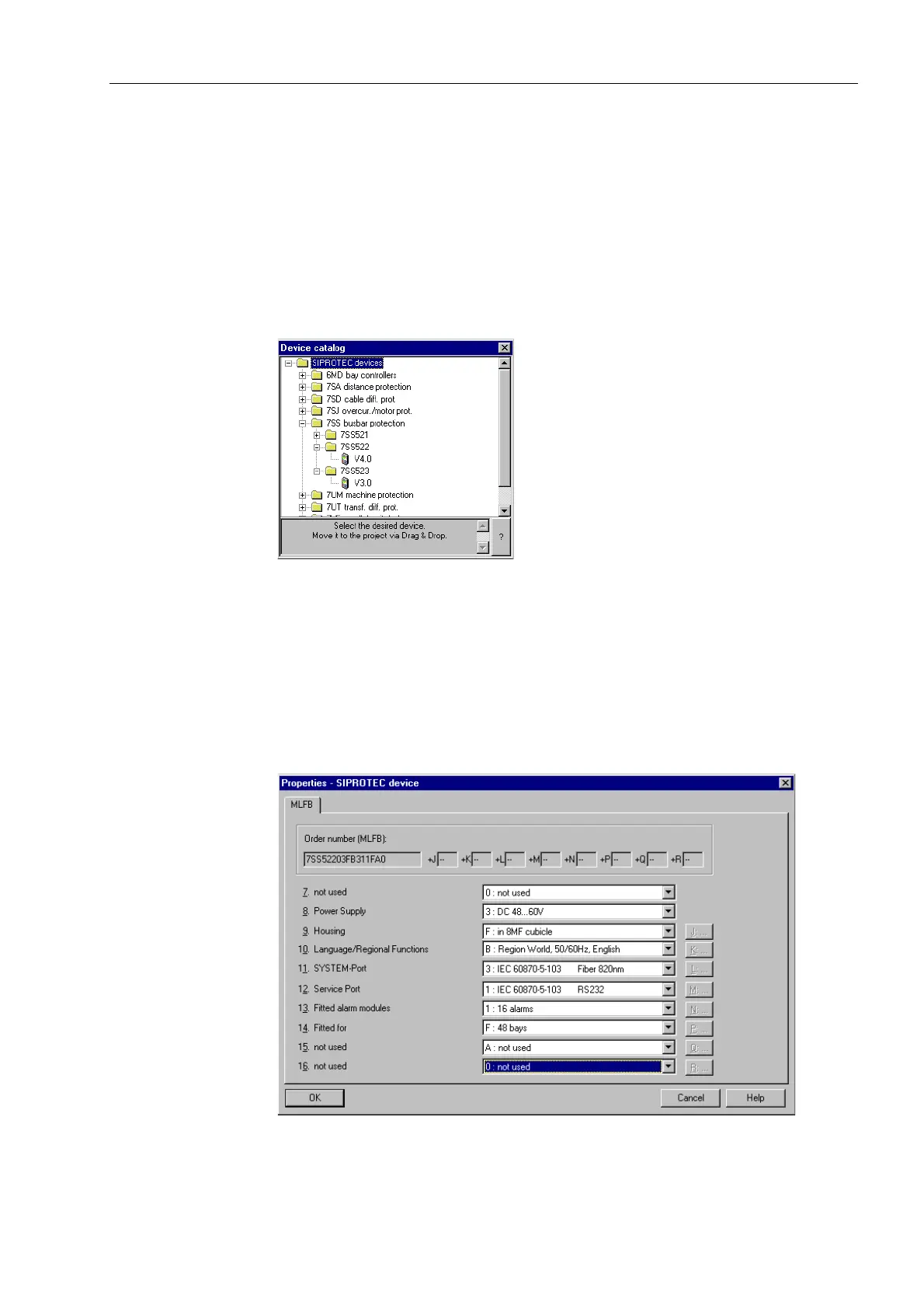 Switch to the directory 7SS522 in the Device Catalog and drag the object V4.6 for
