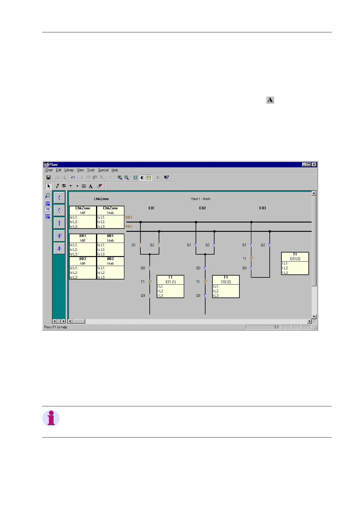 An arrangement of different elements in the substation chart can be saved as a so-