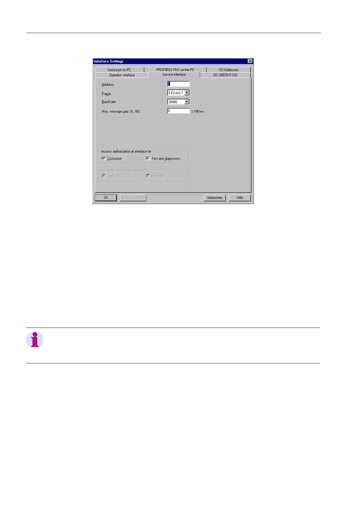 Figure 4-23 DIGSI, setting options of the service port − Example