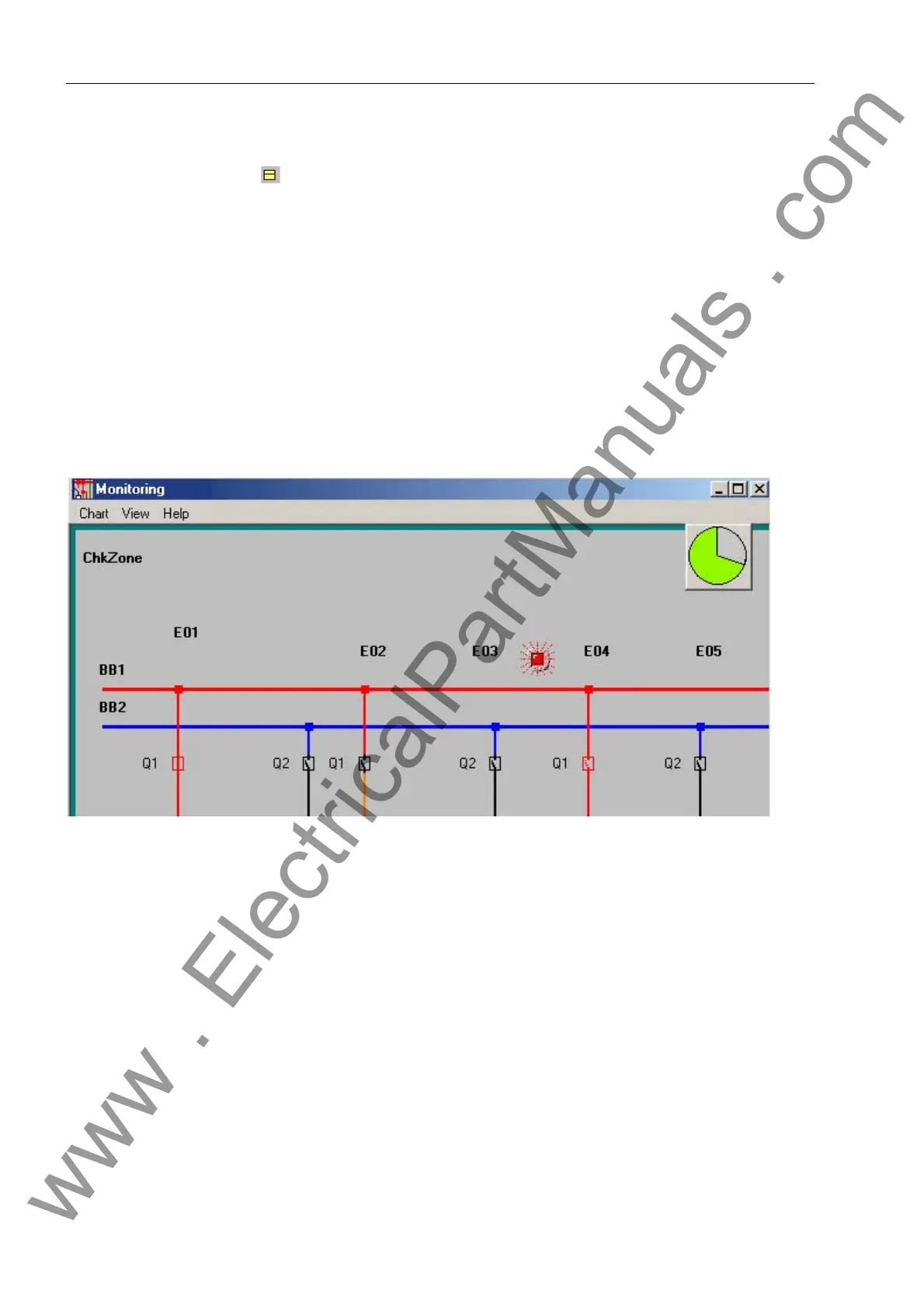In the plant visualization, special operating statuses of a feeder are marked by a fault