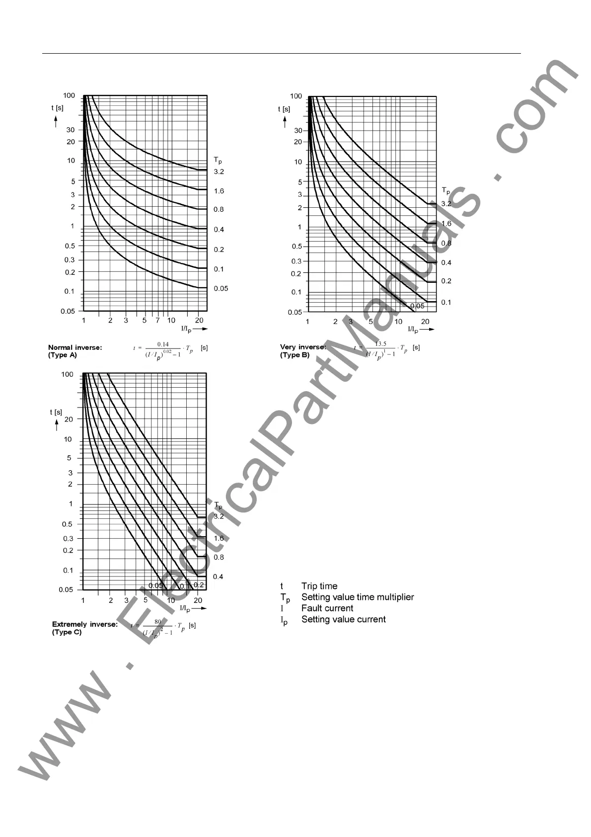 Figure 9-1 Trip time characteristics of the inverse-time overcurrent protection, in acc. with IEC 255-3