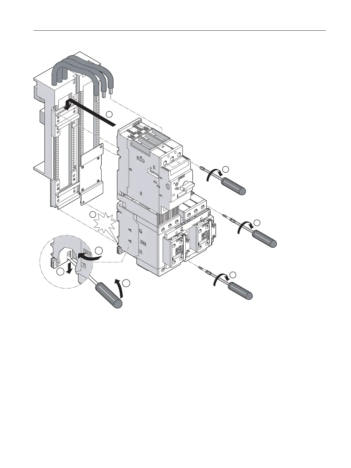 Figure 7-48 Mounting on the busbar adapter (reversing starter, screw-type connection system, size S2)