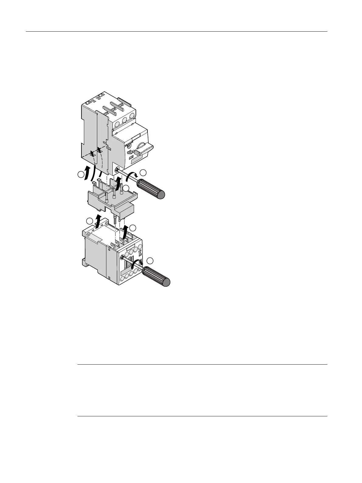 ④ Attach the contactor and the link module to the bottom of the motor starter protector. Insert the