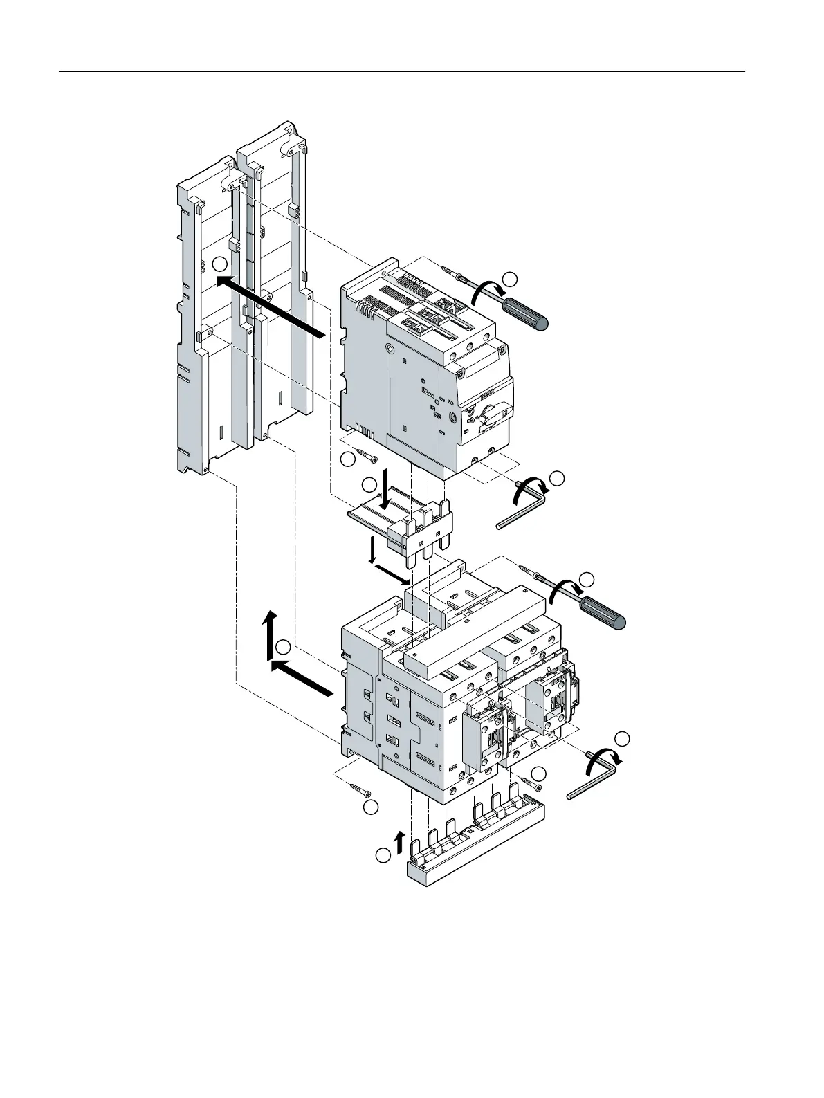 ② Screw the motor starter protector on the DIN rail adapter. The motor starter protector sits tight on