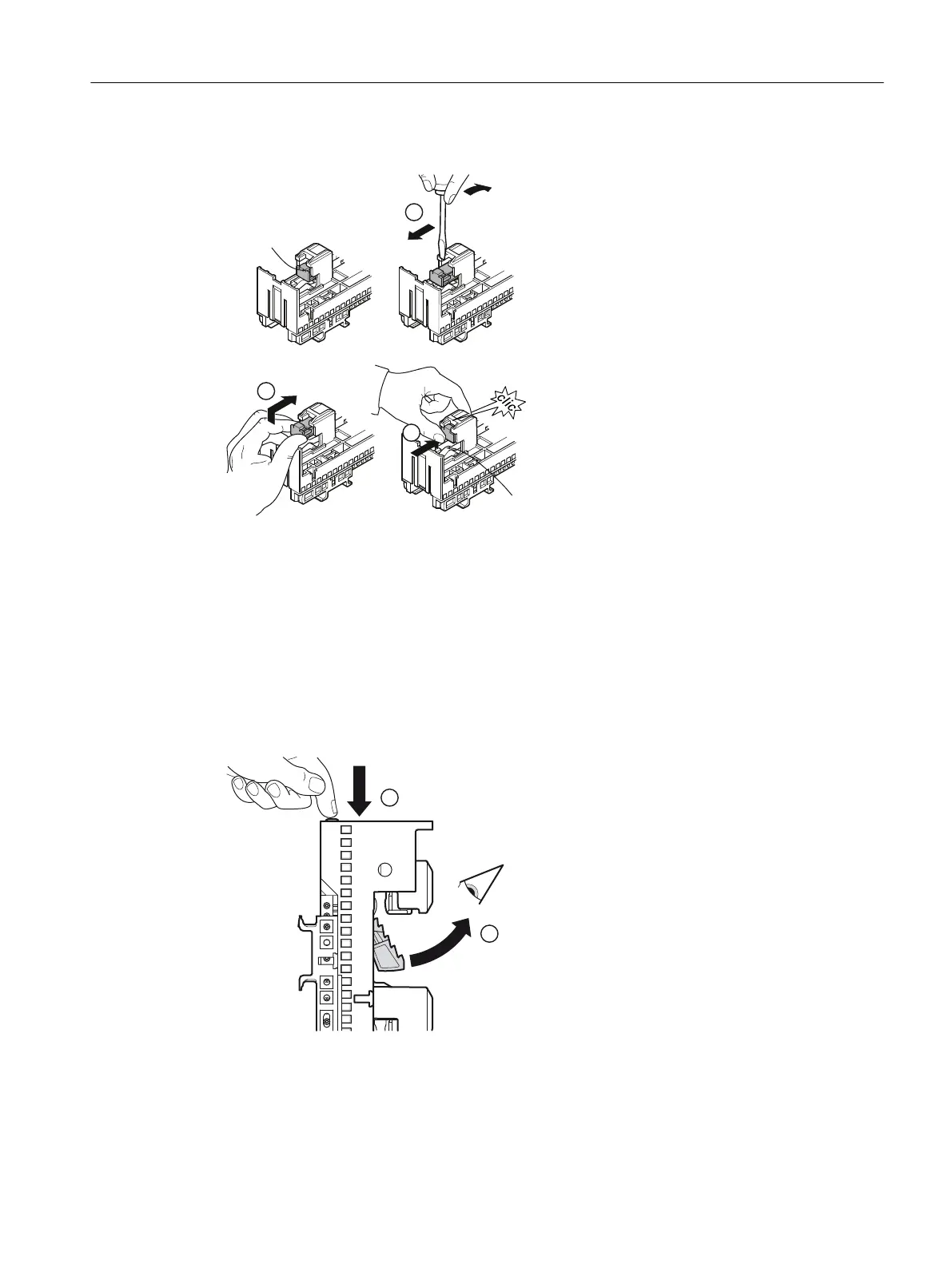 ① Press the button on the top of the busbar adapter to release the holder. The holder should ip out