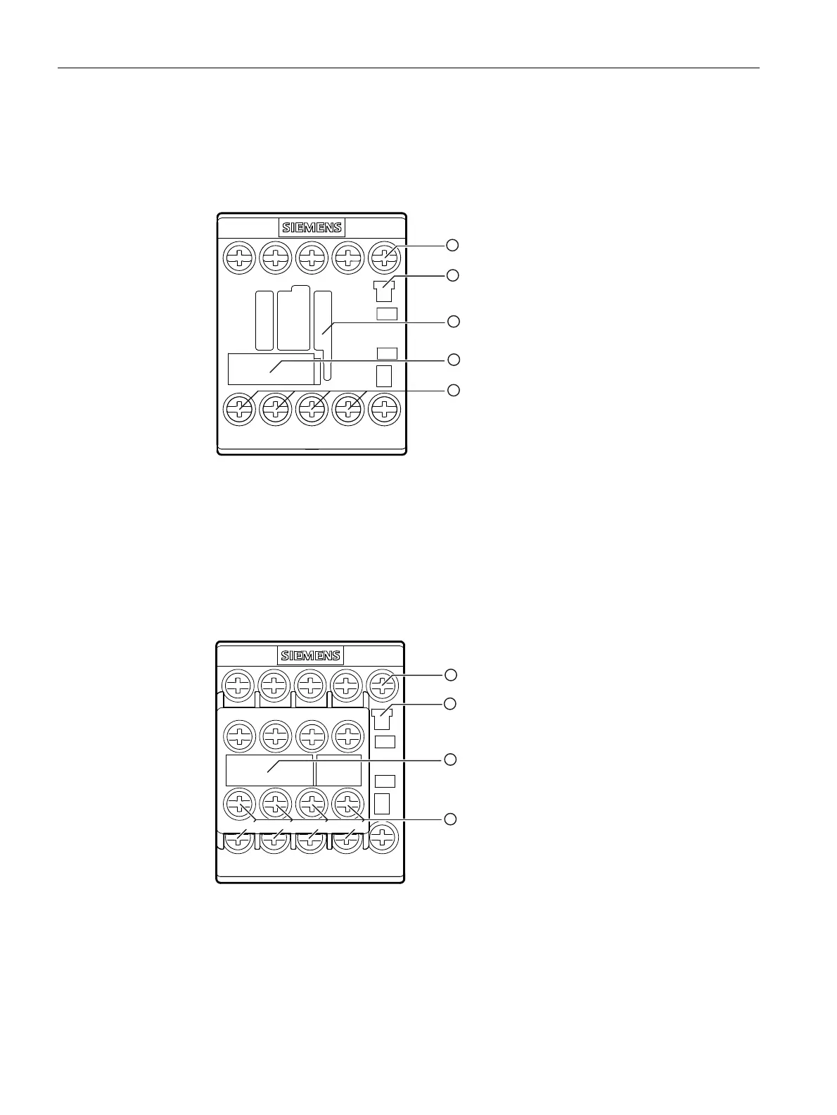 The illustrations below show example equipment features of the 3RH2 contactor relays for