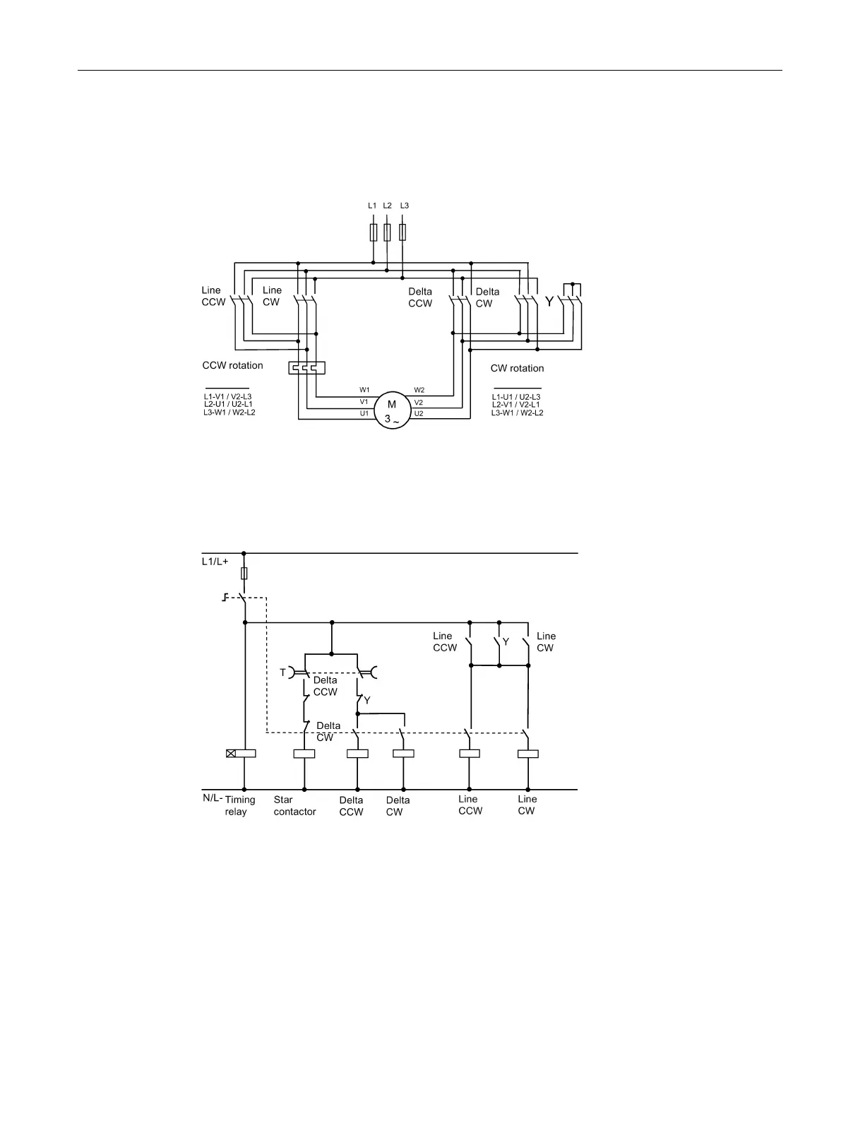 The diagram below shows the preferred main circuit wiring for a star-delta circuit, clockwise