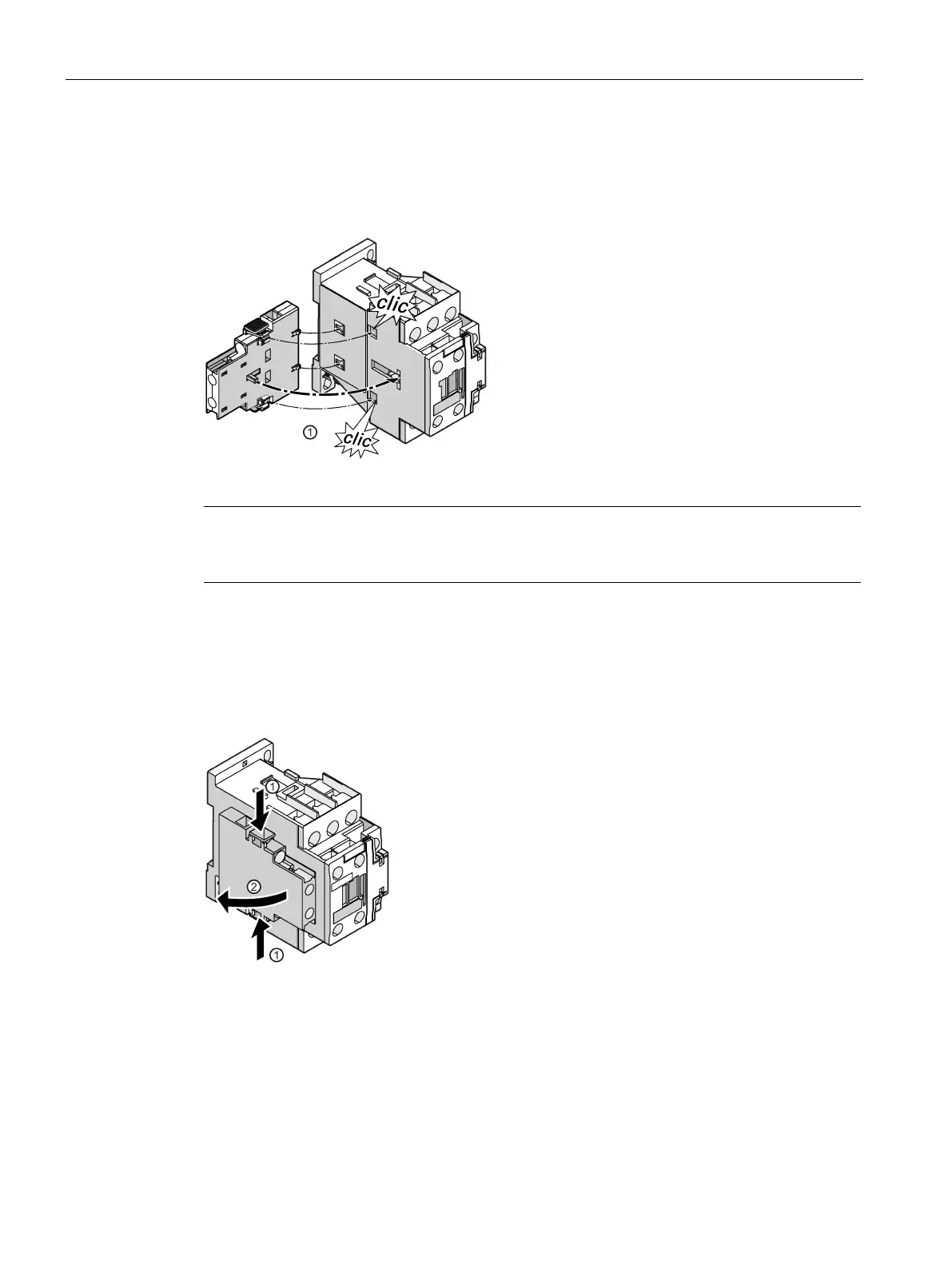 Attach the lateral auxiliary switch to the contactor and snap it on.
