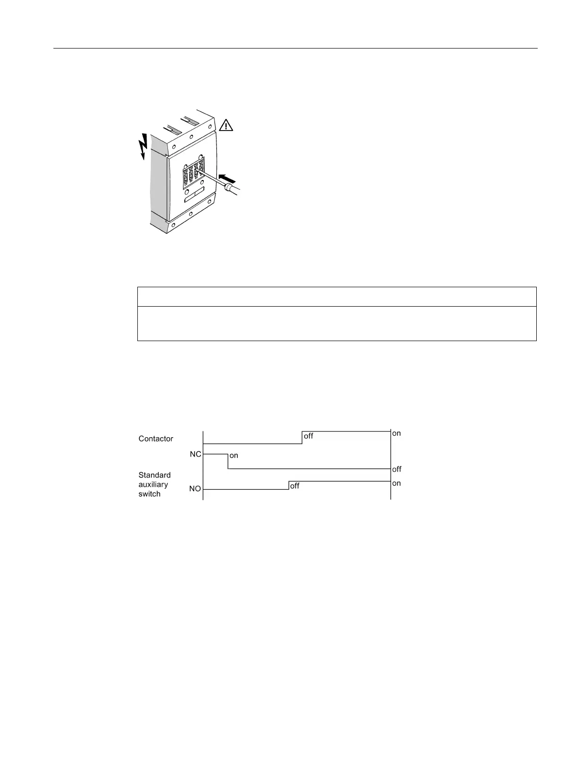 When contactors are switched on, with standard auxiliary switches the NC contacts are