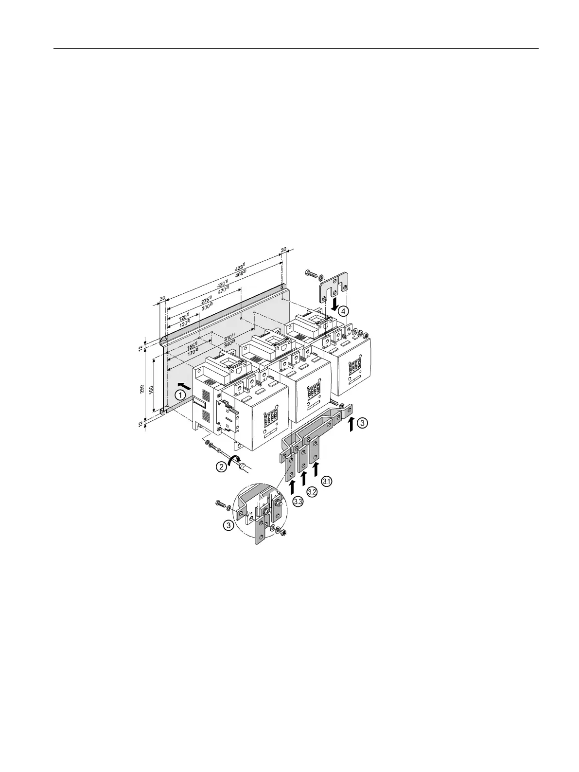 Screw the lower wiring module onto the connection bars (3/3.1/3.2/3.3).