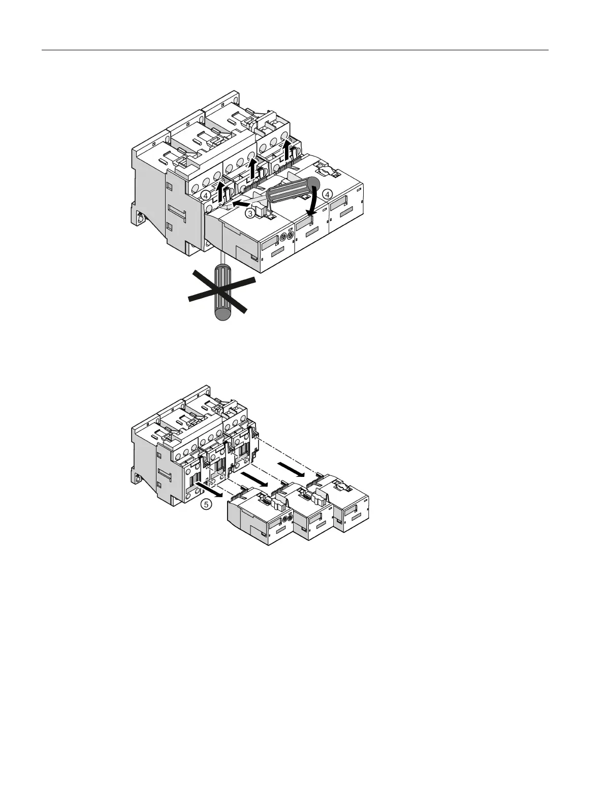 Pull the basic module and the two coupling modules toward you and away from the contactors.