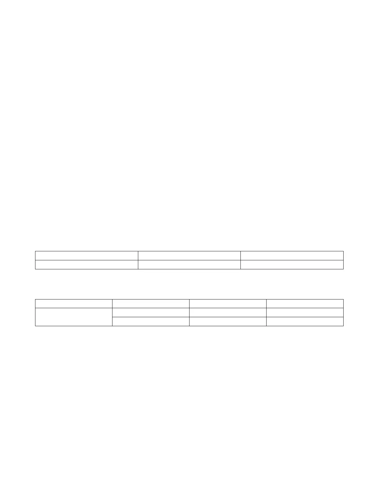 "X" - required, "-" - not required