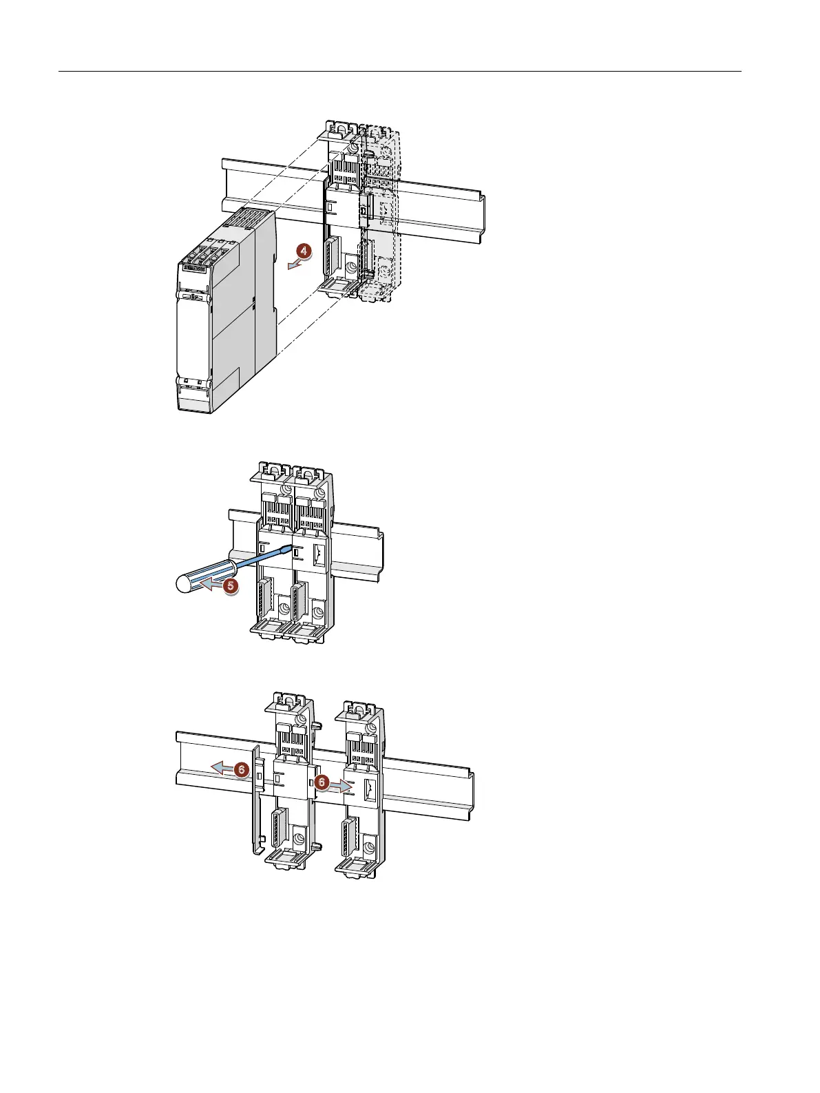 7.9 Removing 22.5 mm/17.5 mm devices with device connectors from a standard mounting rail