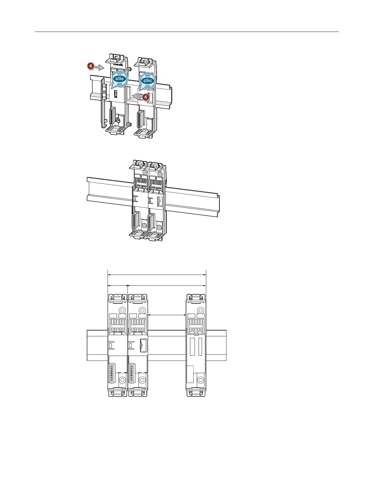 7.10 Mounting 90 mm devices with device connectors on a standard mounting rail
