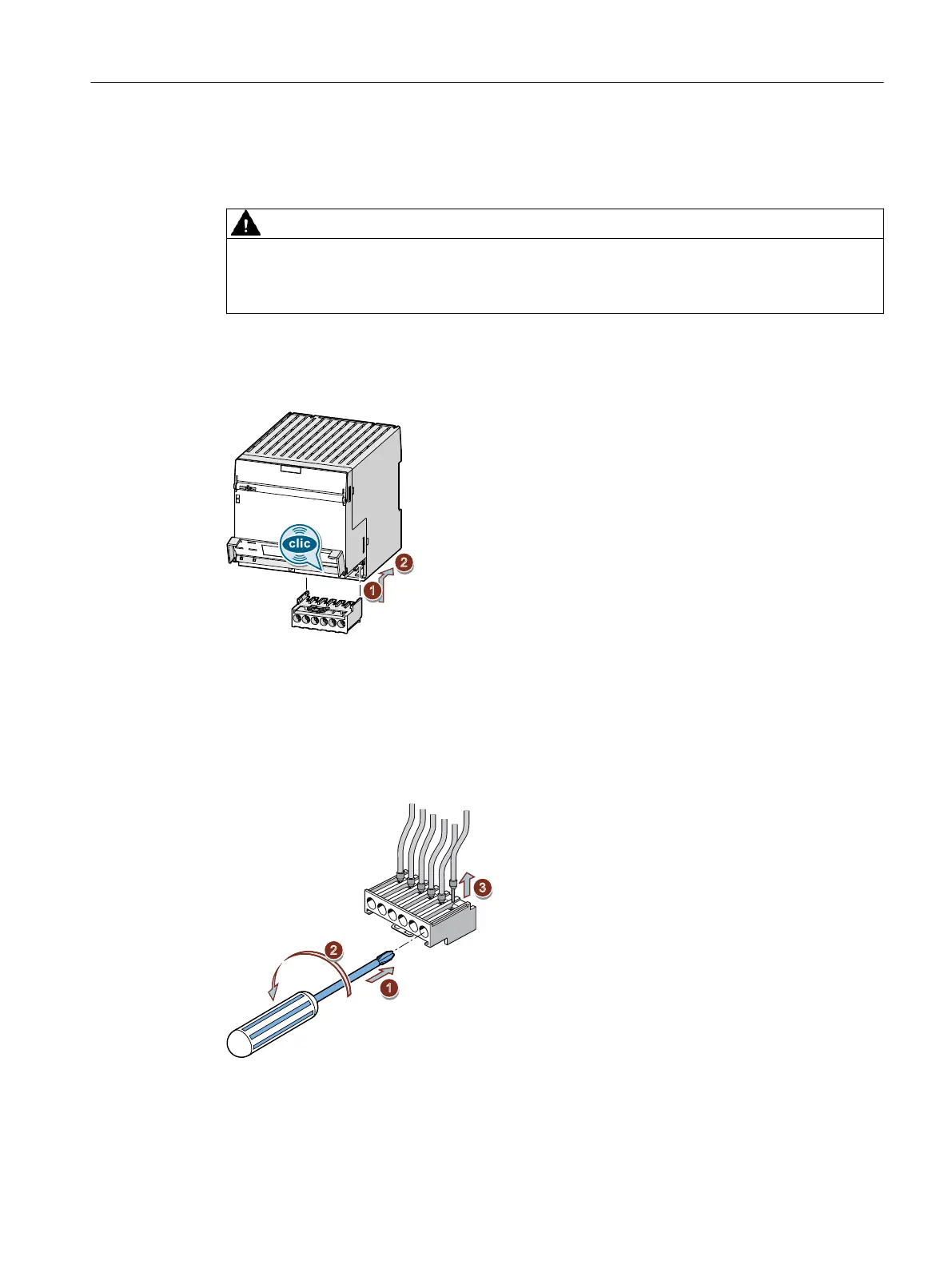 1. Insert a at-head screwdriver between the clip of the terminals and the front panel.