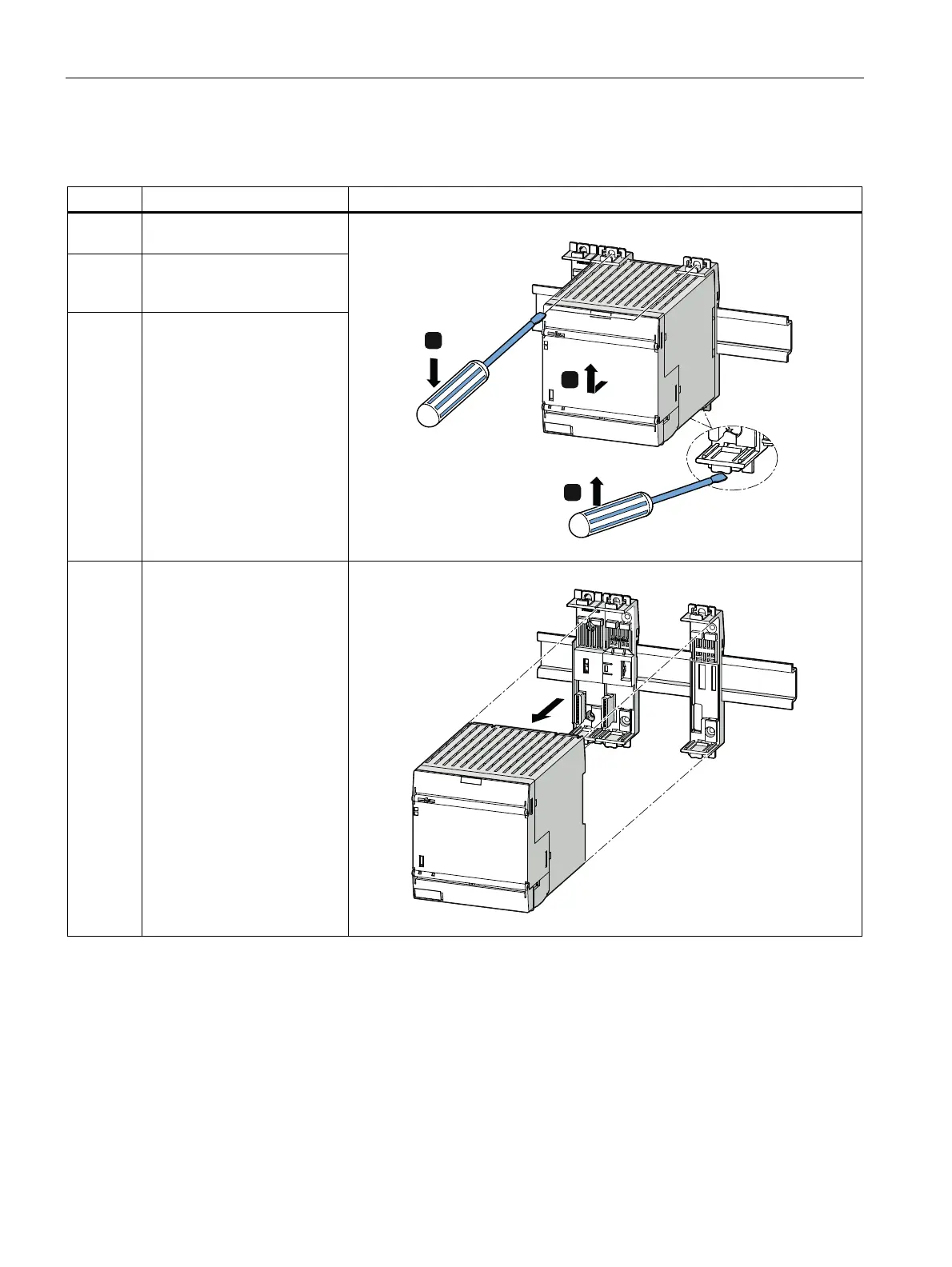 8.11 Removing 90 mm devices with device connectors from a standard mounting rail