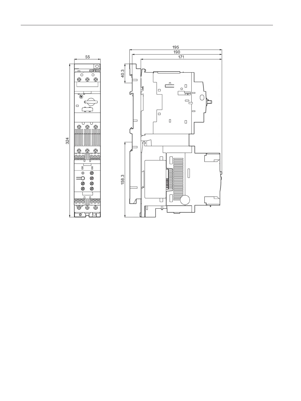Figure C-18 Direct-on-line starter S2 with 3RW4.3 soft starter, screw-type connection system, DIN rail