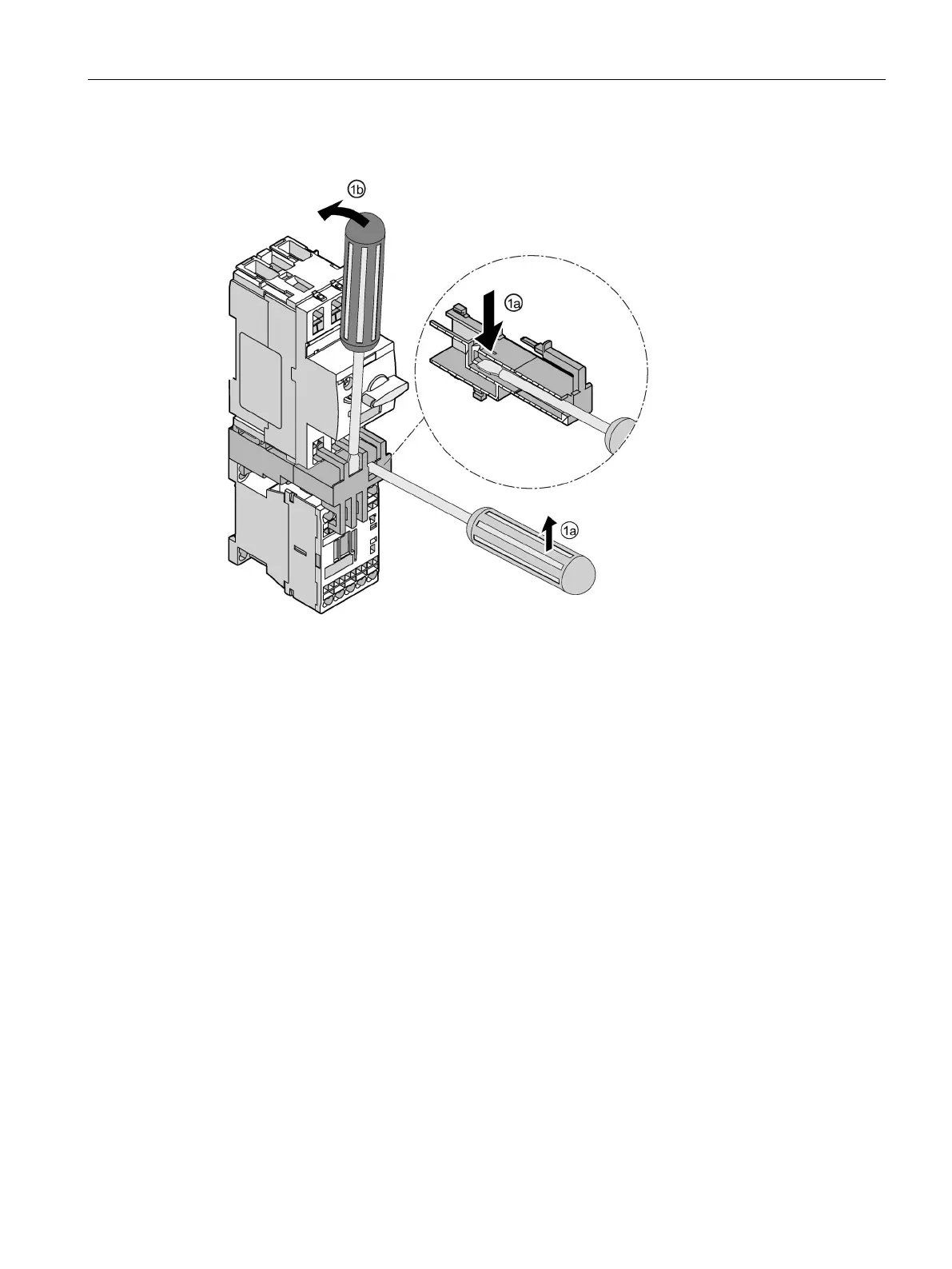 1b Position the screwdriver on the link module as shown in the figure and press it down to release