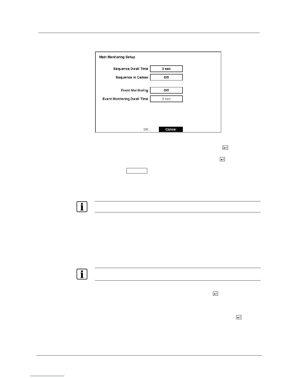 monitor. You can also turn camera sequence and event monitoring on and off.