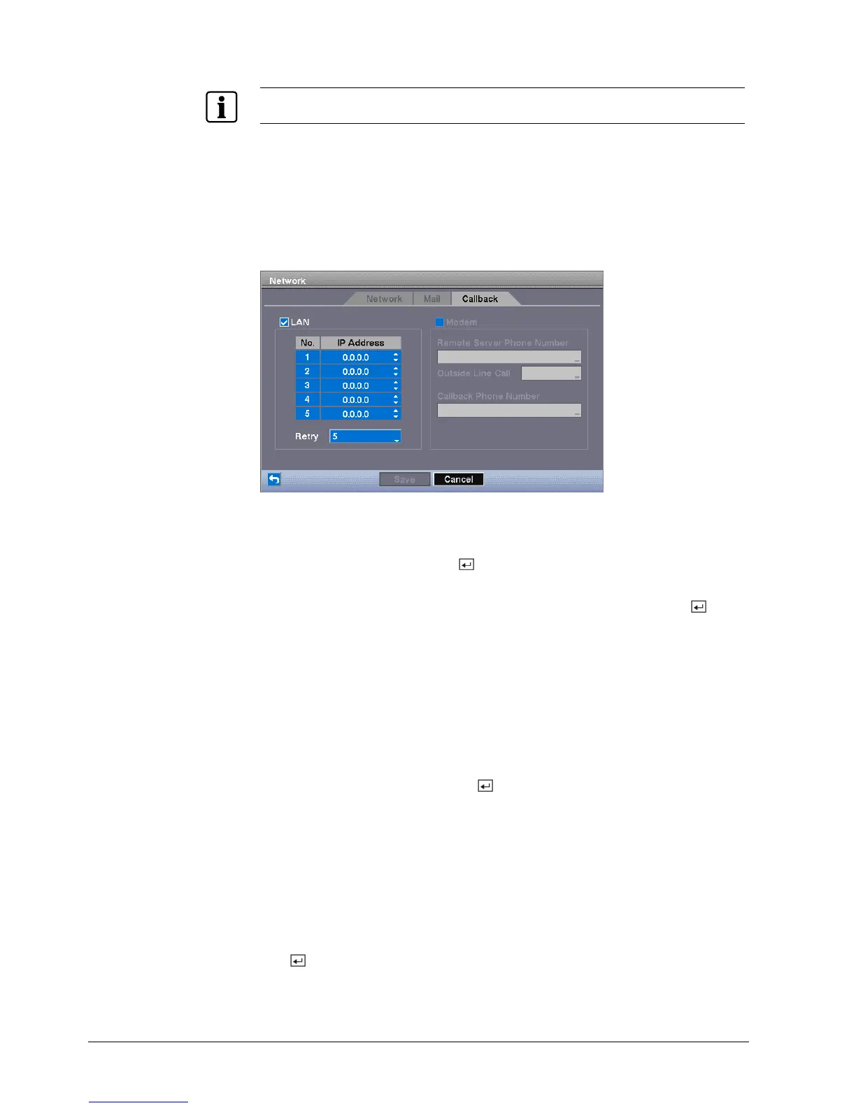 Fig. 34 Callback setup screen