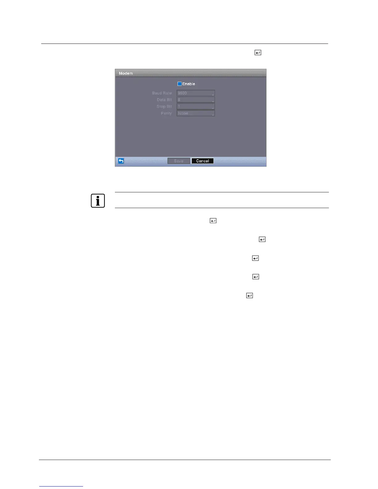 Î You will only be able to change the settings if Modem is enabled.