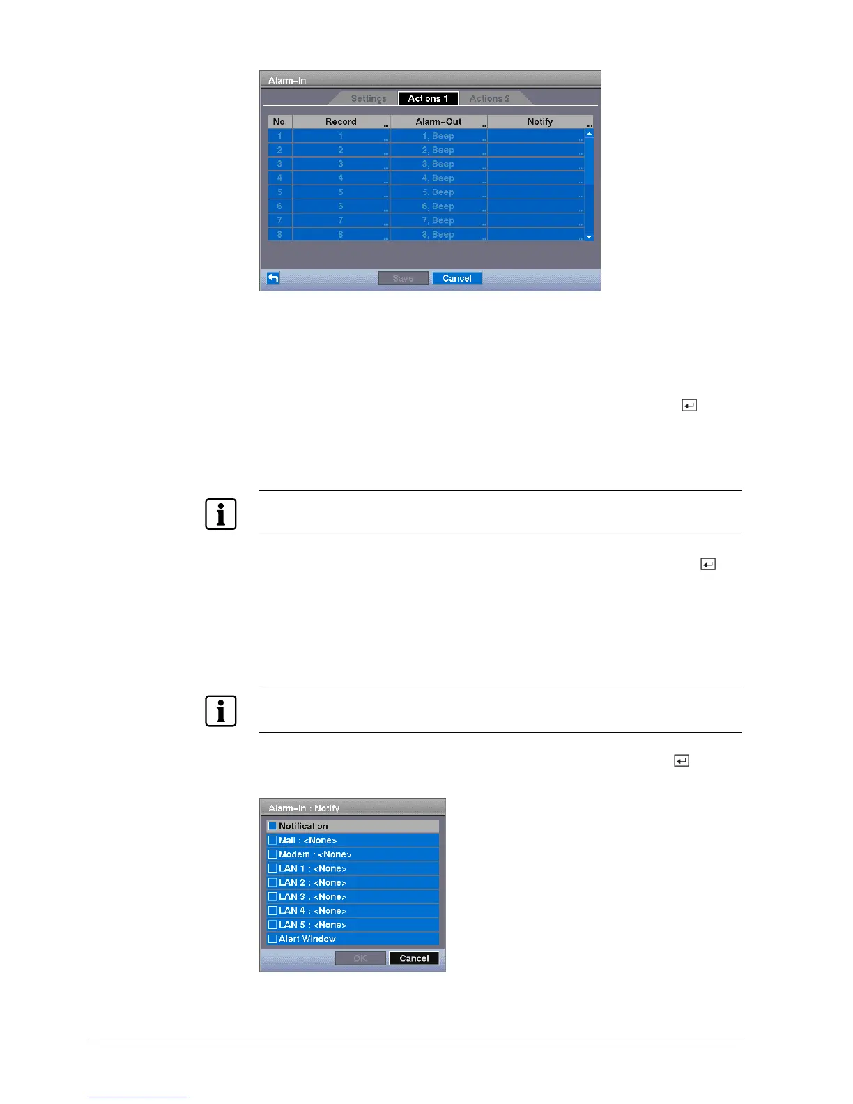 Fig. 42 Alarm-In Actions 1 screen