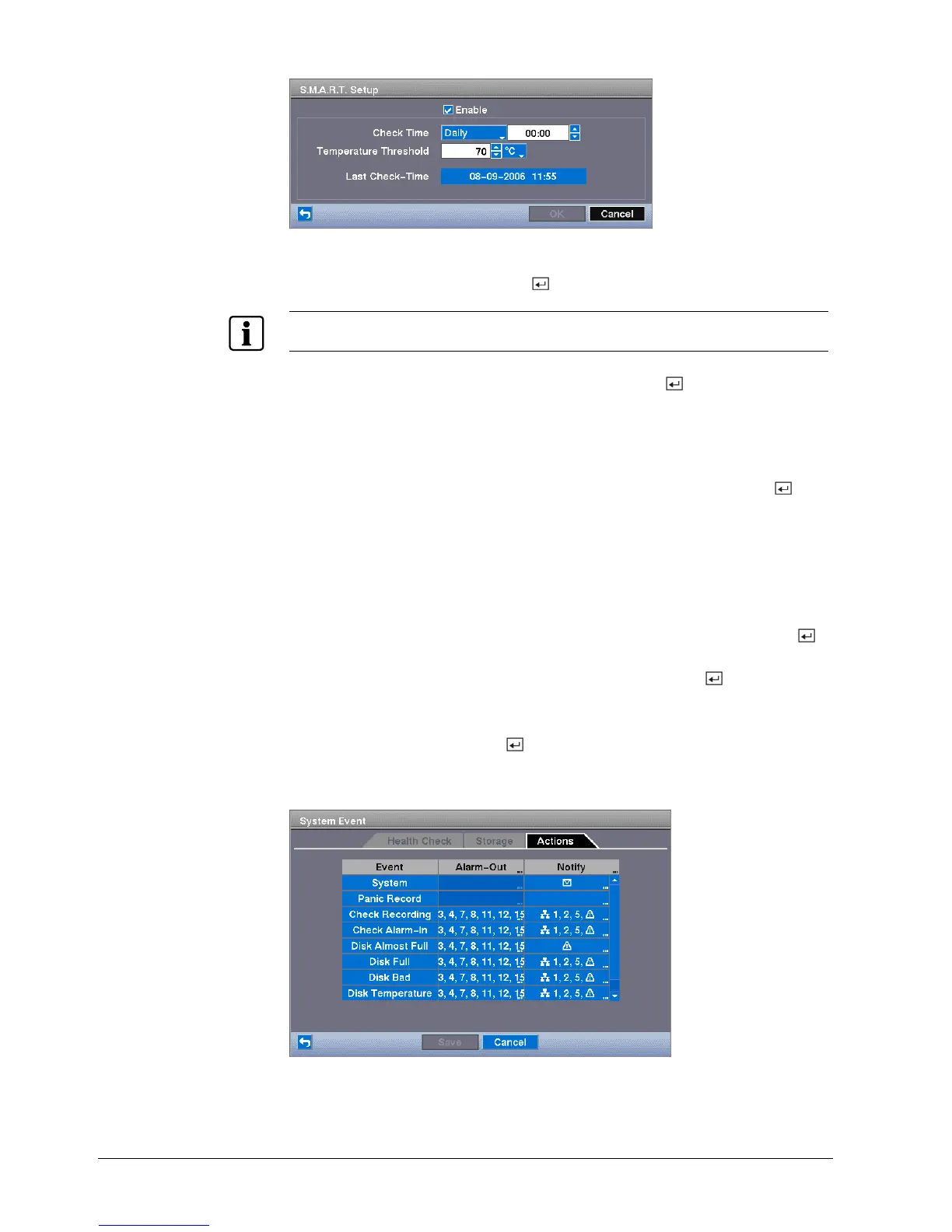 11. Highlight the Actions tab and the System Event Actions screen displays.