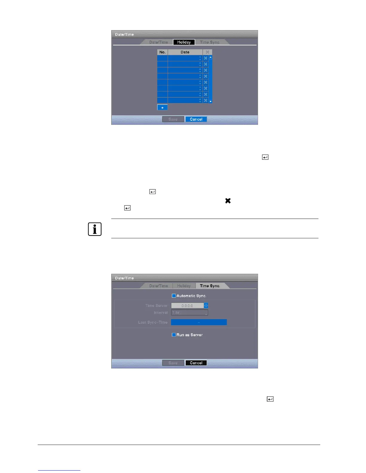 Fig. 92 Holiday setup screen