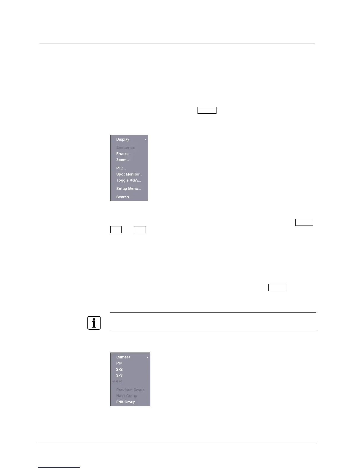 Selecting Freeze, PTZ… and Spot Monitor… is the same as pressing the Freeze,