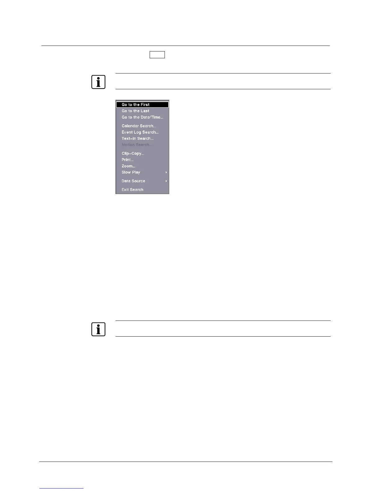 Pressing the Menu button or clicking the right mouse button while in the Search