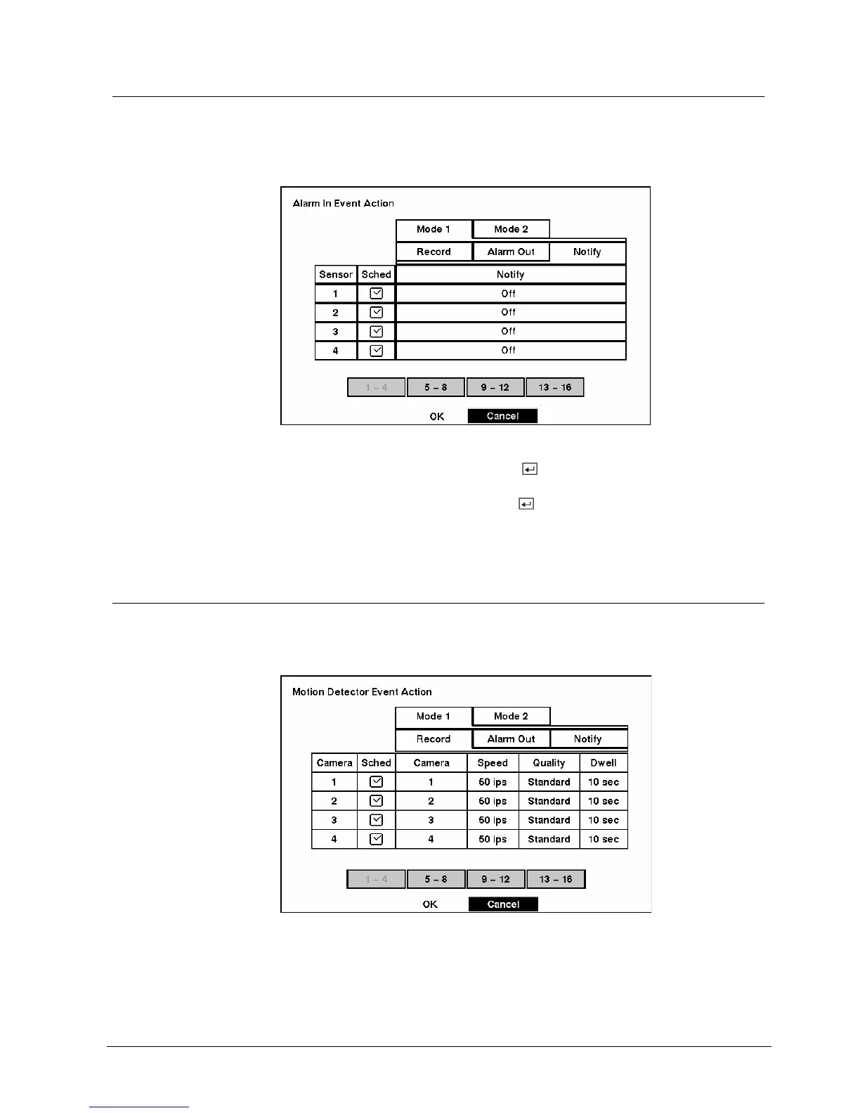 3.8.4 Motion Detector Event Action (Record) Setup Screen