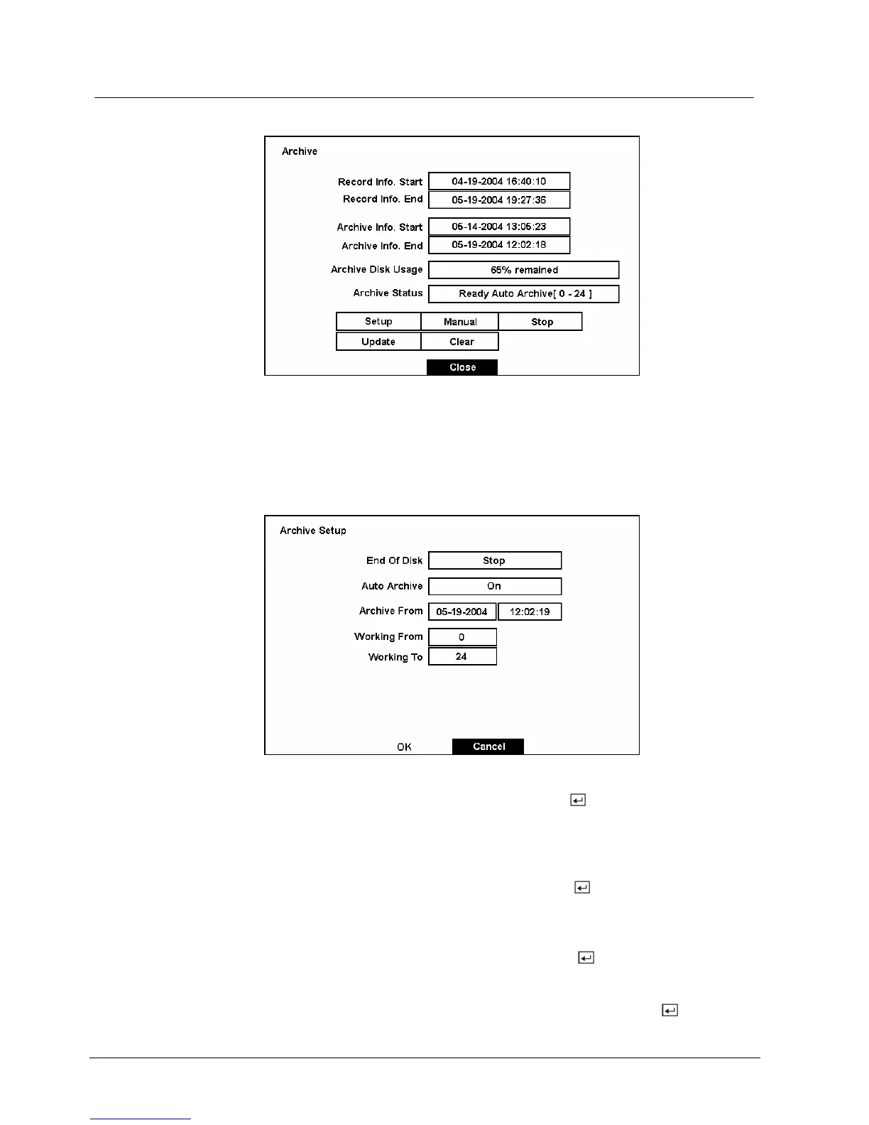 between Overwrite and Stop. When set to Overwrite, the DVR continues archiving