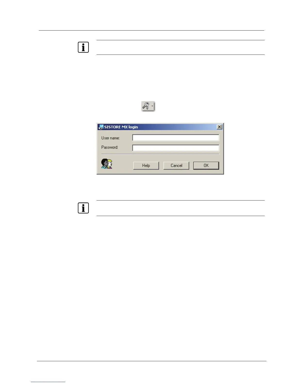 Without a successful login only the SISTORE MX online help will be available; all other functions will