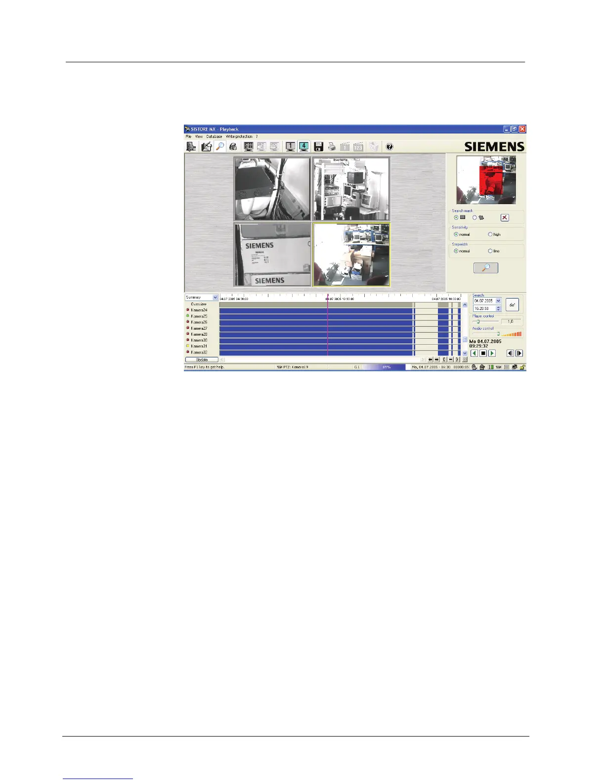 Assigning a camera to a playback window is carried out by clicking on a playback