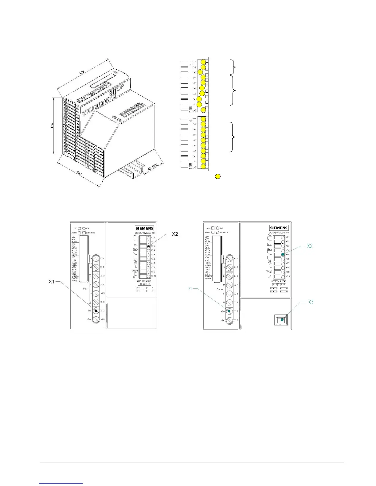 Die Hutschienenbefestigung auf der Rückwand kann von der Position wie SITOP modular (Auslieferzustand) durch Lösen der 3