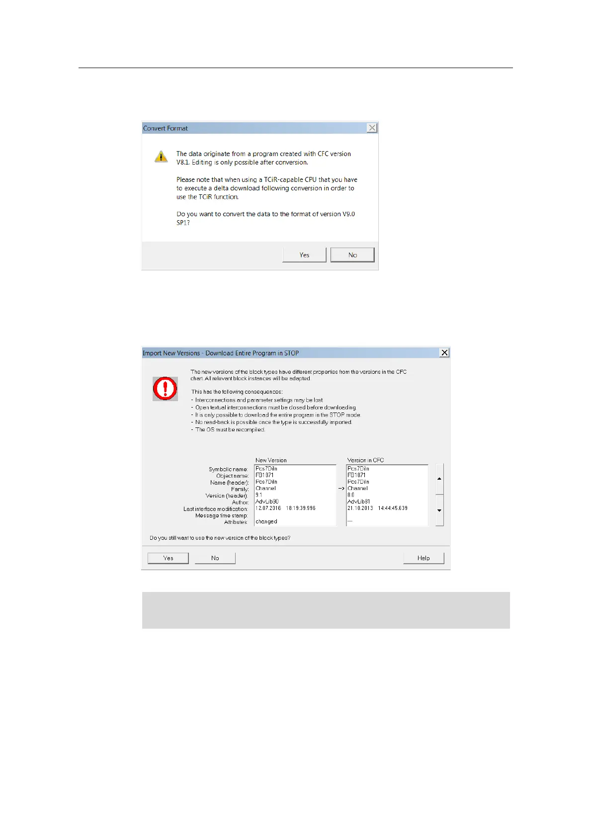7. In the "Import New Versions" dialog, confirm that the blocks in the CFC charts