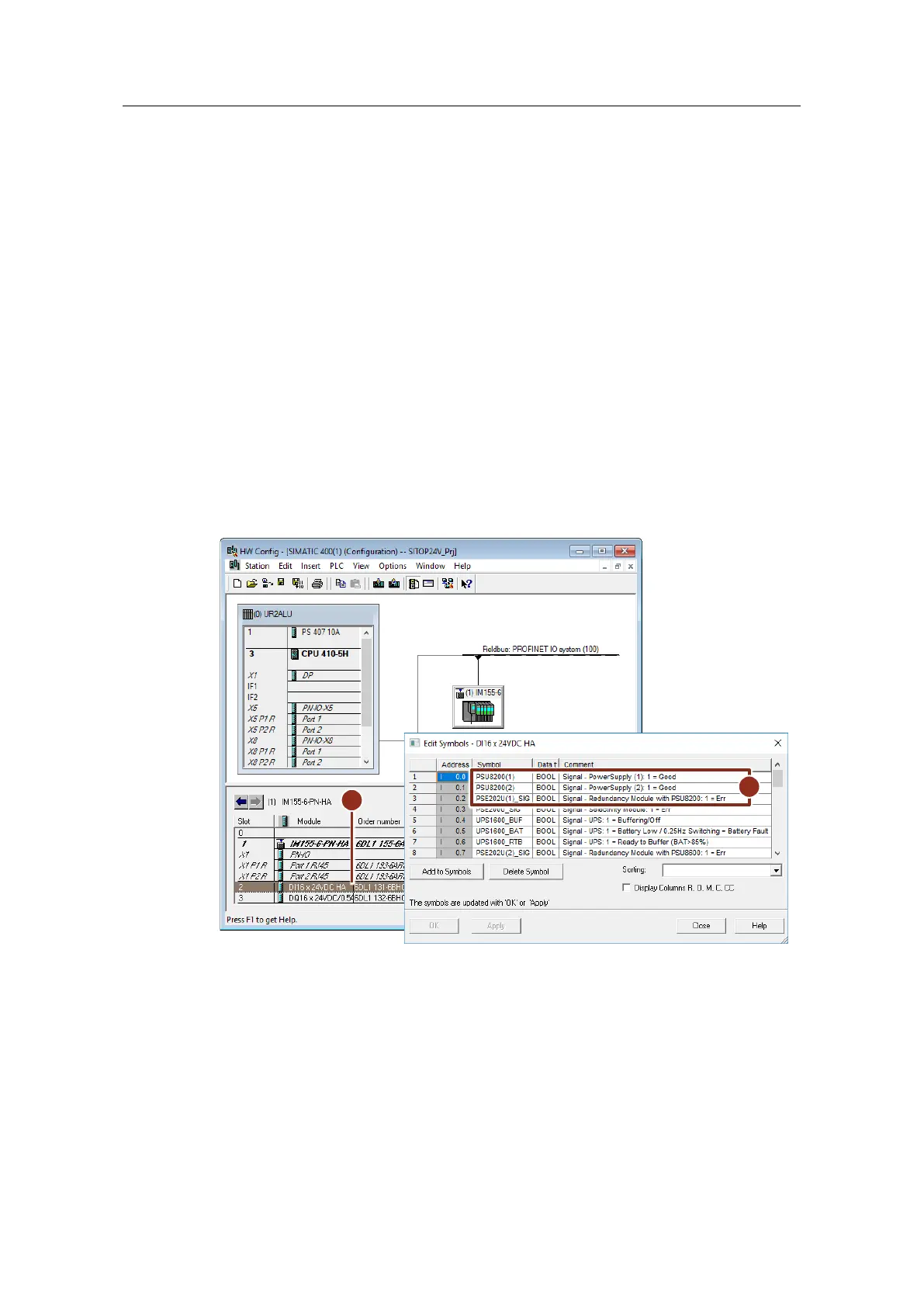 3. Enter an appropriate symbolic name (2) for the inputs that are connected to the