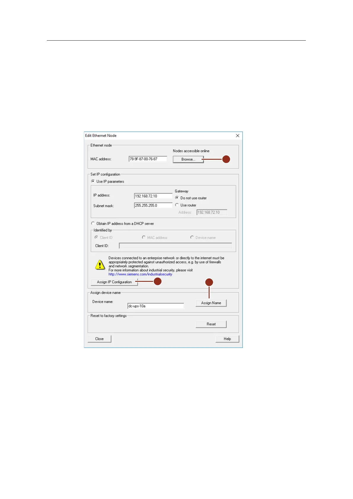 3. In the "Edit Ethernet Node" dialog, click on the "Browse" pushbutton (1) in the