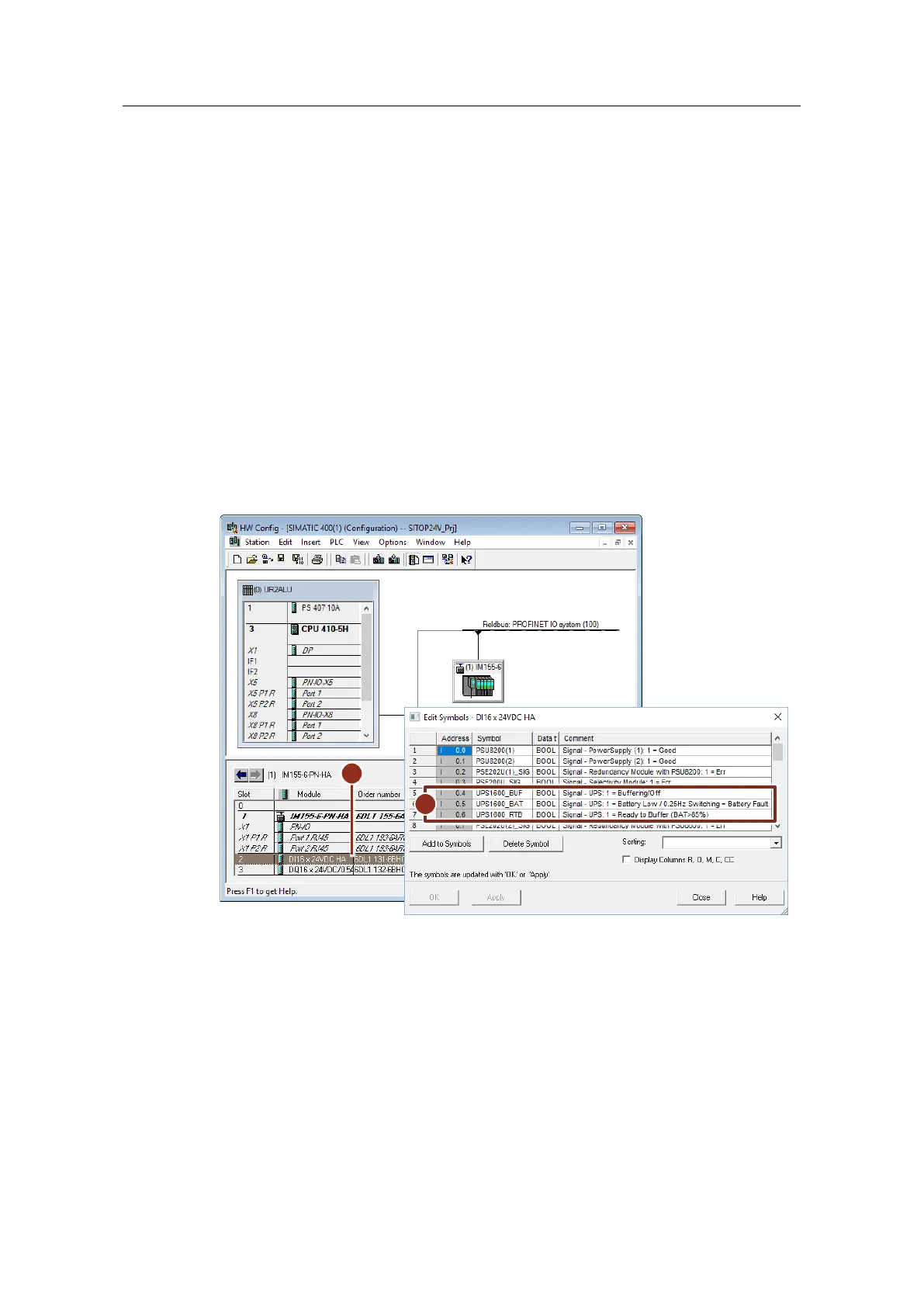 3. At the inputs that are connected to the DC UPS, enter an appropriate symbolic