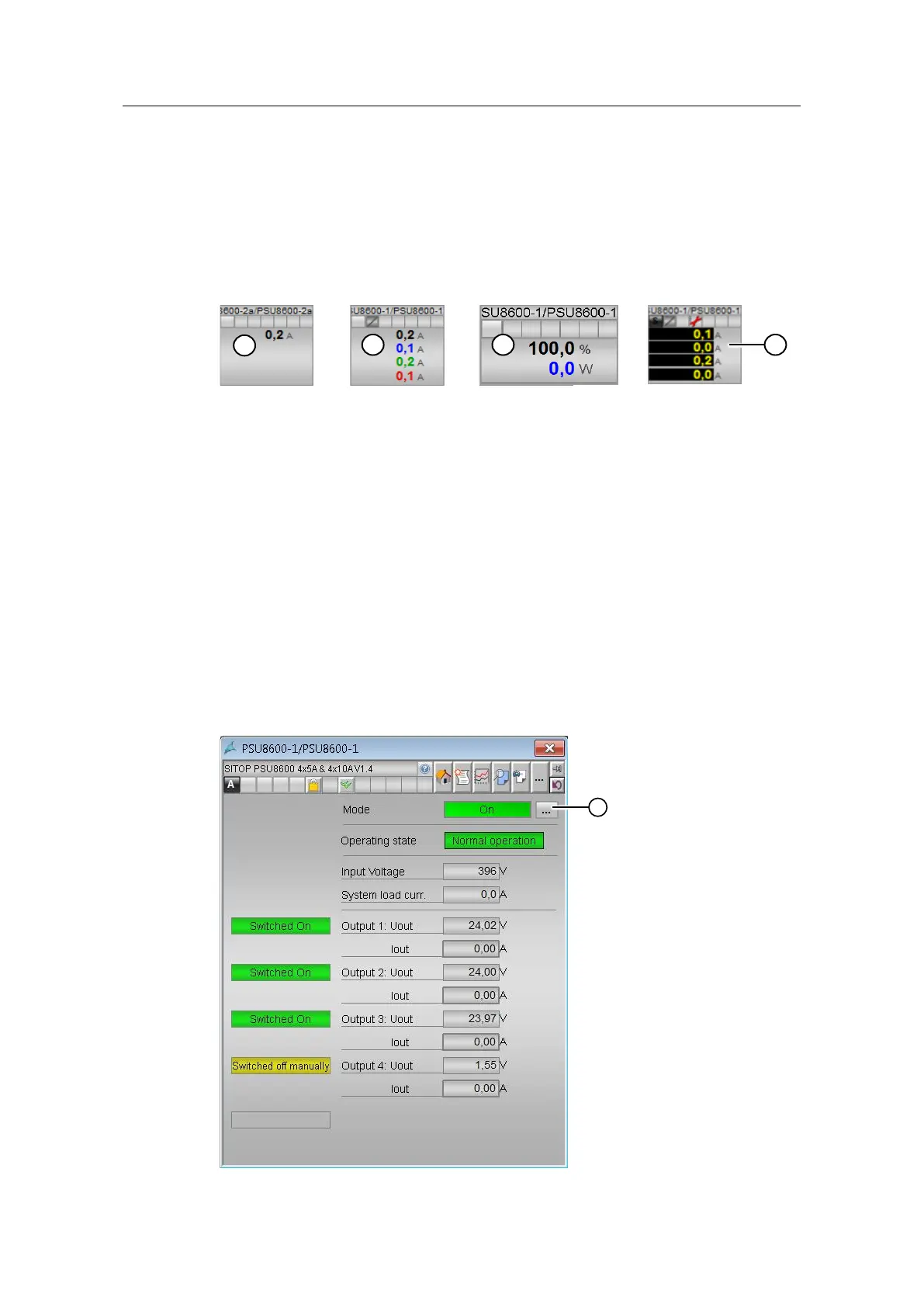 output (4) or the currents of the four selective outputs of the basic module (5), the