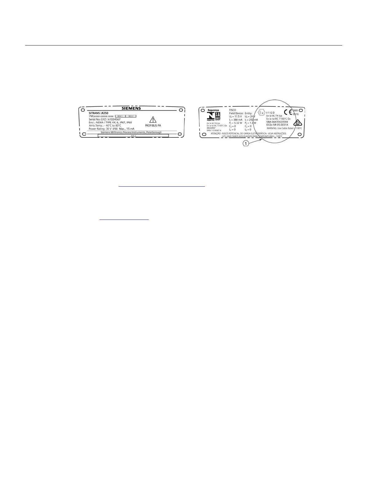 Device nameplate (ATEX/IECEx/INMETRO/RCM)