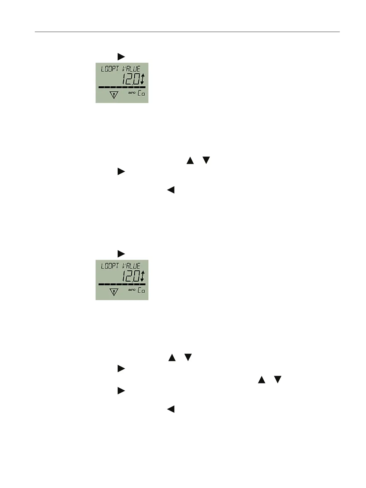 6. Set a value between 3.6 mA and 22.8 mA using the buttons or .