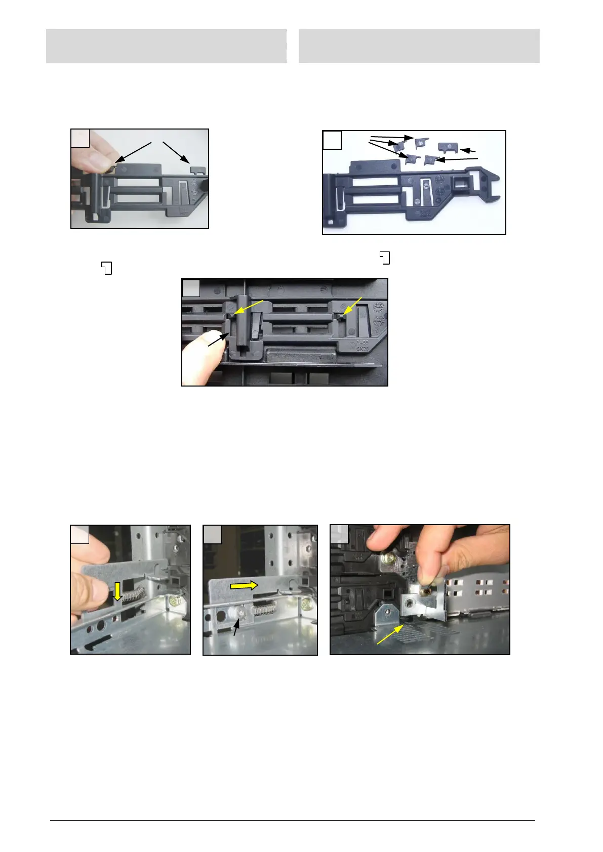 5. Insert the left shutter-fastener (e) into the compartment bottom