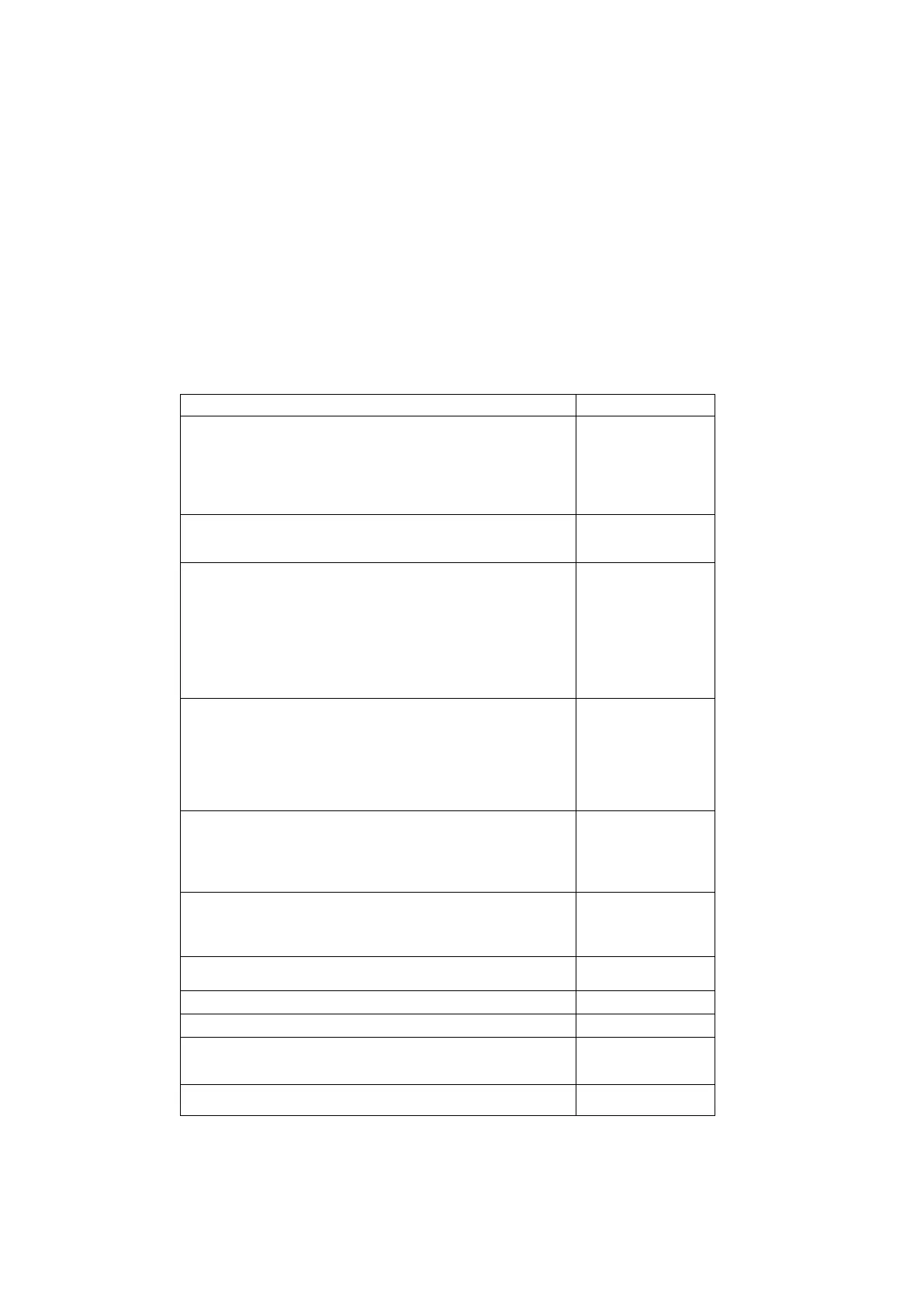 The required accessories are indicated in the following table.