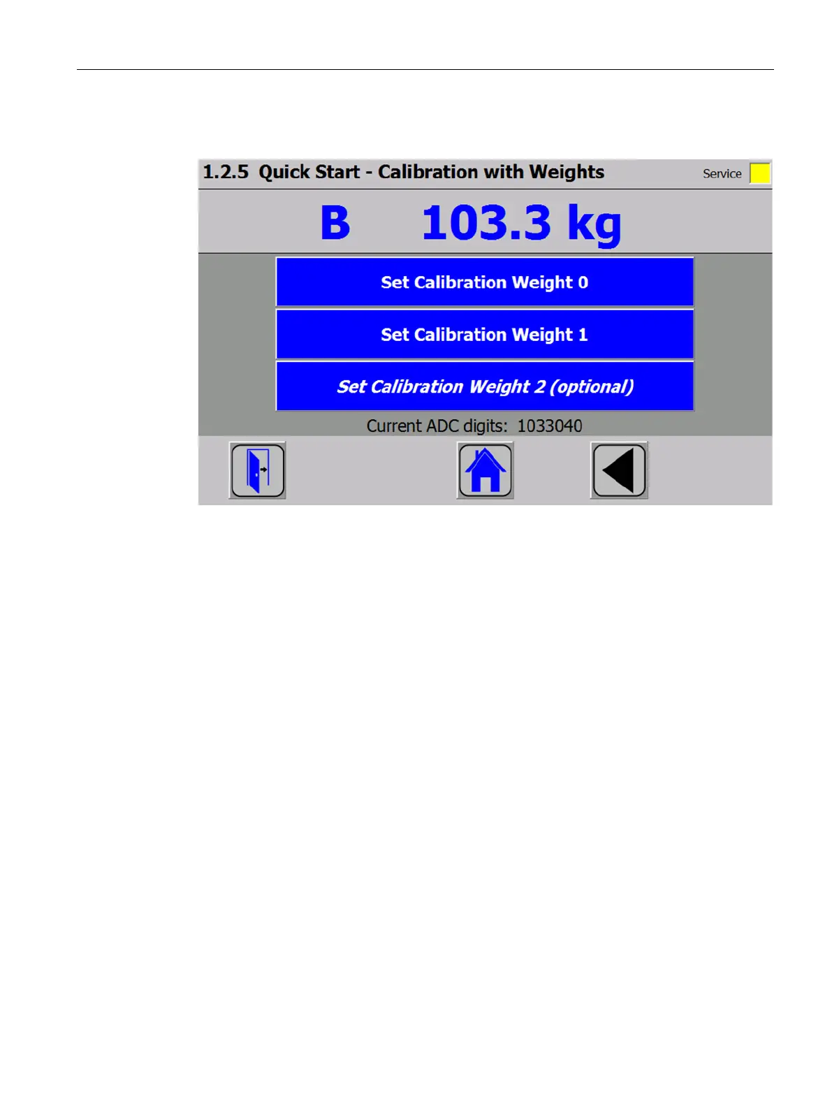 2. Place the "Calibration weight 1" defined in step 4 on the scale construction, and execute