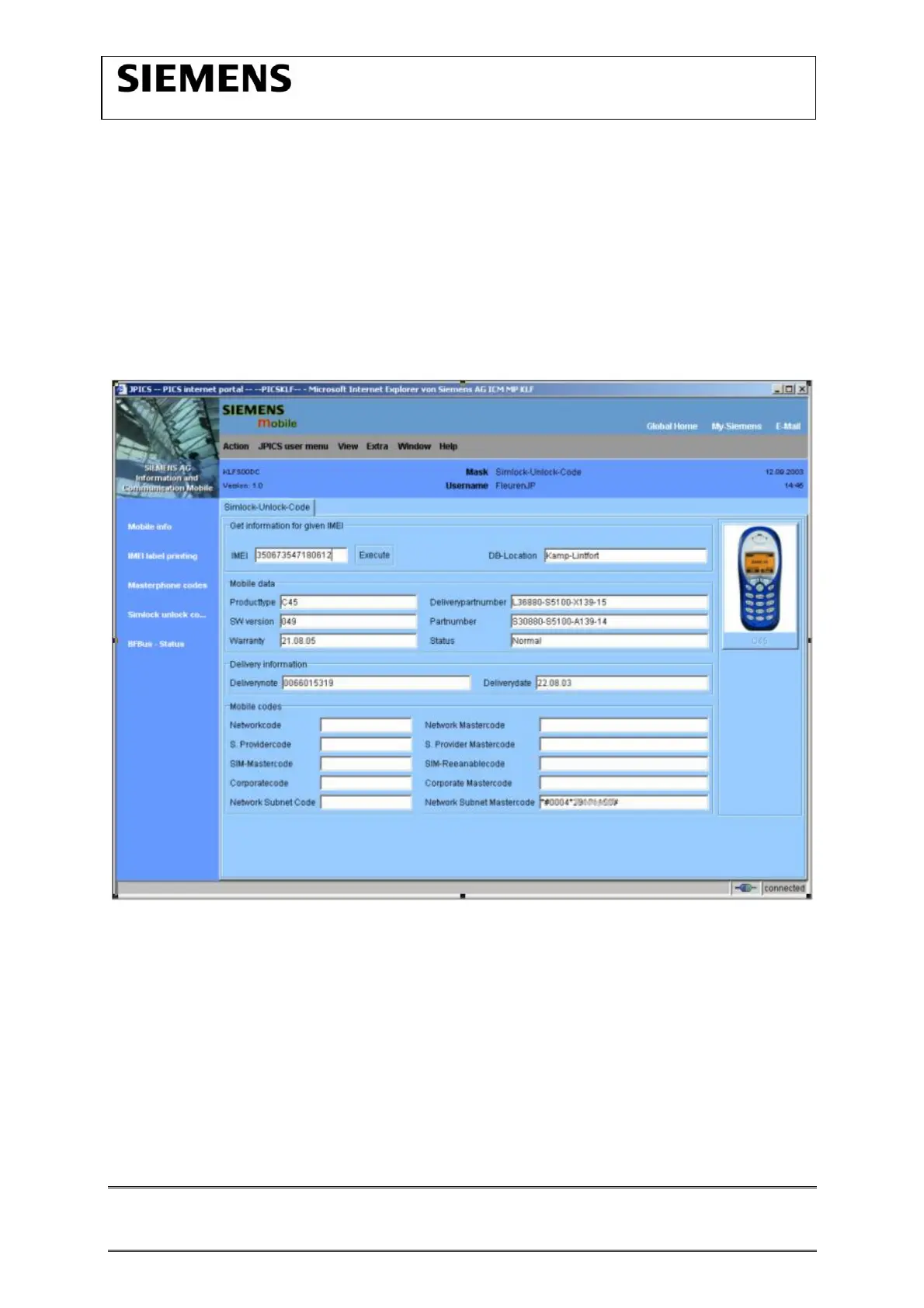 - The user must be given the authorization to obtain Simlock Unlock- Codes for the