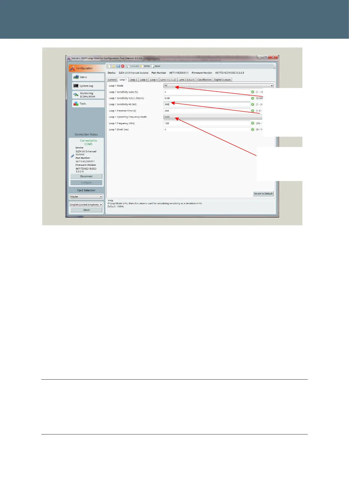 The “Loop sensitivity Hz (Hz)” should be left at the default (20) until the loop sensitivity has