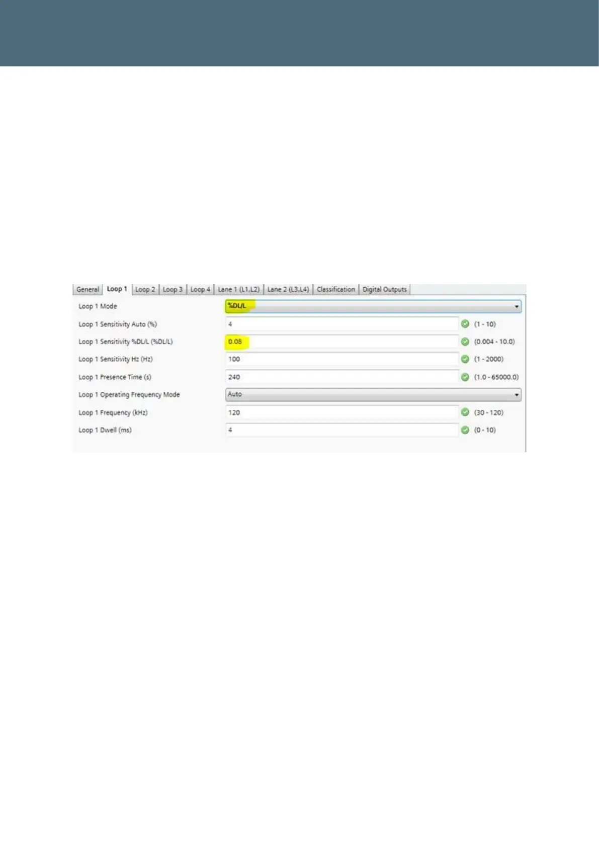 For vehicle classification the loops should be configured as follows in the manual %DL/L mode