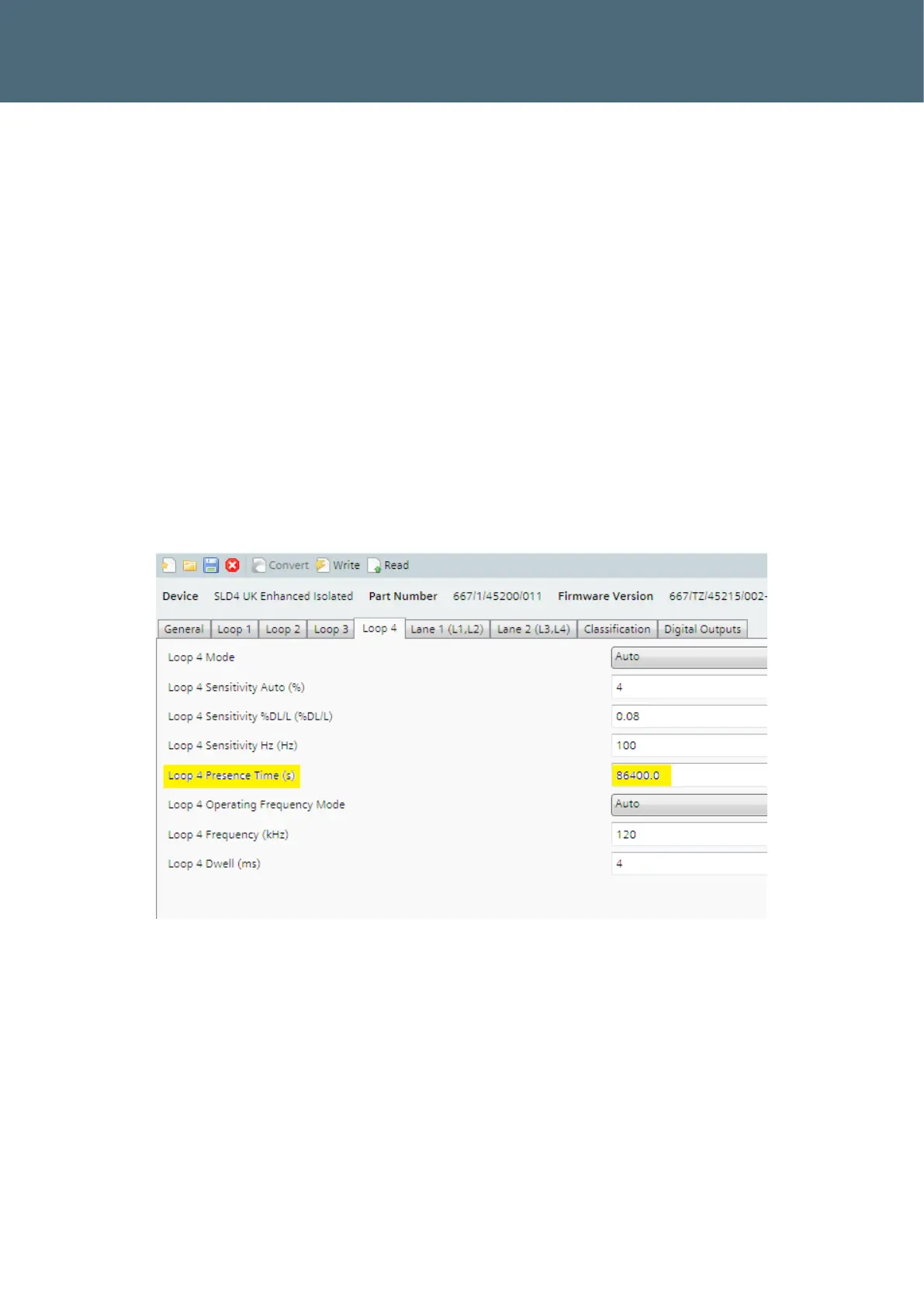 of the loop. The “presence” time is therefore set to maximum and sensitivity reduced.