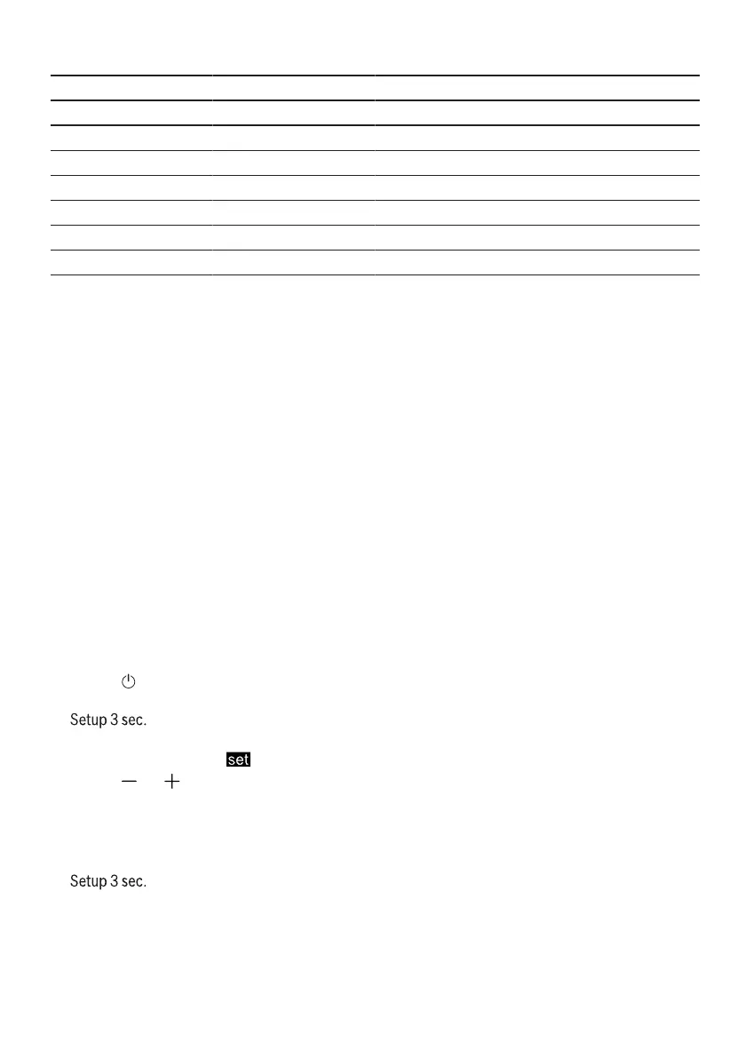 Water hardness °E Hardness range mmol/l Setting value